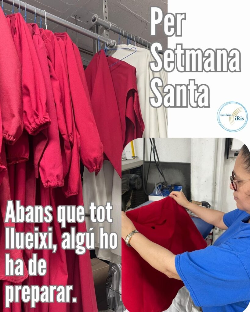 Con la llegada de la Semana Santa, muchas entidades intensifican su actividad para preparar actos y procesiones. En este contexto, el servicio de lavandería de la Fundació Iris se convierte en un apoyo clave para garantizar que las prendas estén en las mejores condiciones.