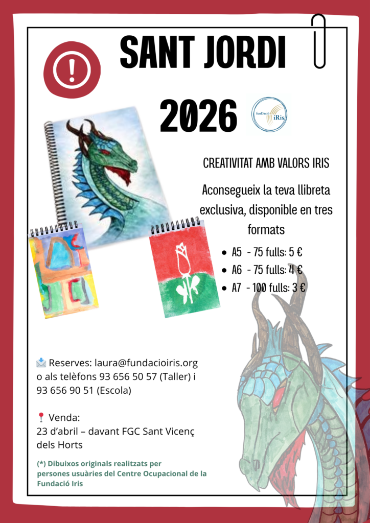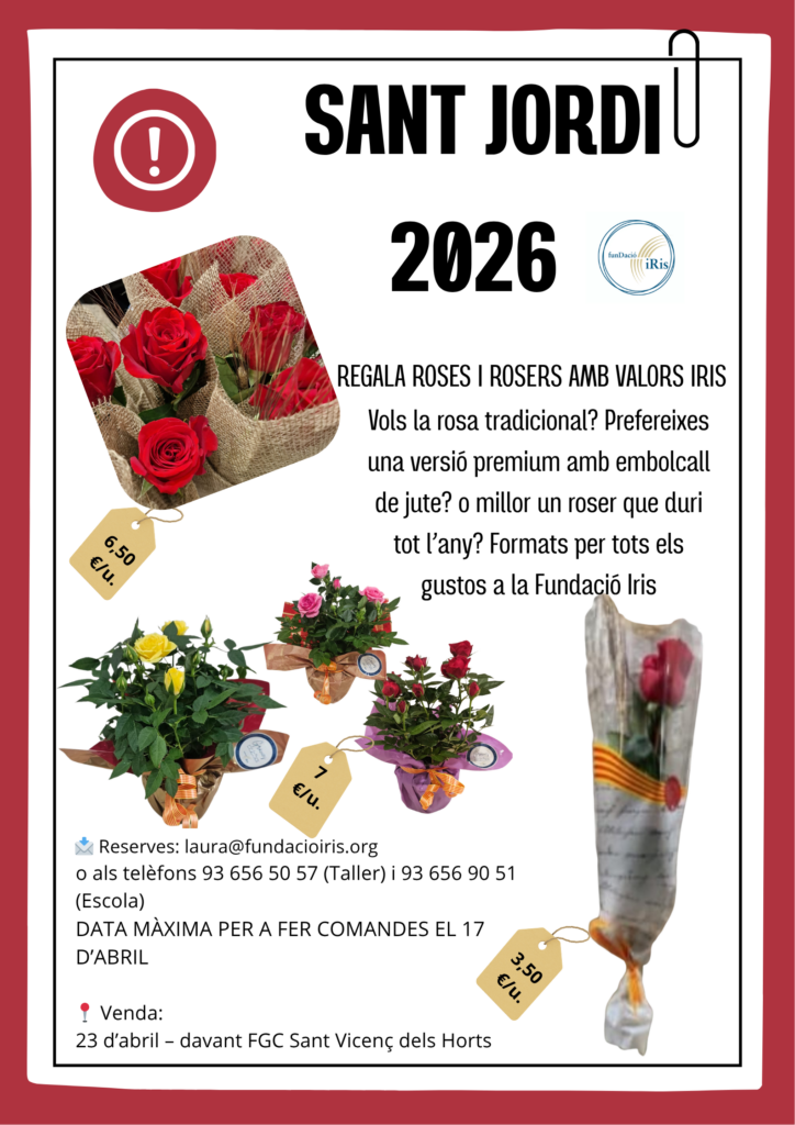 Con la llegada de Sant Jordi, la Fundació Iris vuelve a participar activamente en esta jornada tan especial con la preparación y venta de diferentes productos elaborados en sus servicios.
