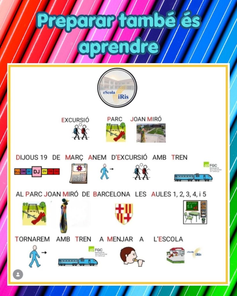 Com a part d’aquest procés, també s’ha preparat una sortida al Parc de Joan Miró. La preparació prèvia ha inclòs el treball d’anticipació i comprensió de l’activitat, afavorint la seguretat i la participació de l’alumnat.